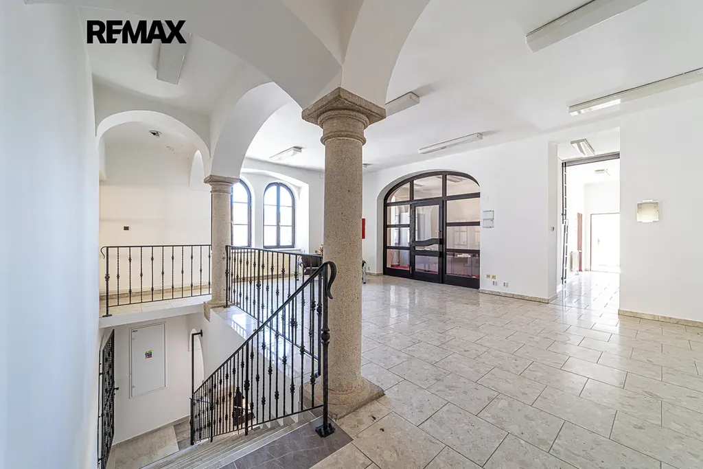 Tento dům, který původně sloužil pro účely banky, prošel rozsáhlou a pečlivou rekonstrukcí celého přízemí (1. NP), což zaručuje moderní a reprezentativní prostory připravené k okamžitému využití pro podnikání. Ve 2. nadzemním podlaží se nachází další kancelářské prostory, které nabízejí ideální prostředí pro sídlo vaší firmy.