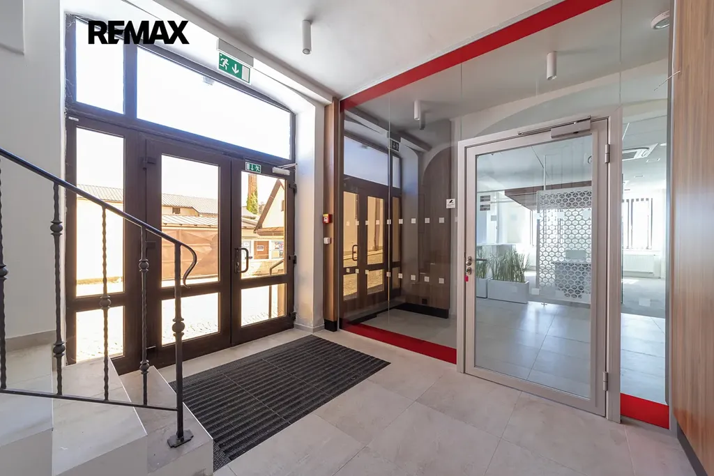 Praktičnost podtrhuje vlastní parkovací plocha přímo vedle domu, což je v centru města neocenitelná výhoda pro klienty, zaměstnance i obyvatele.