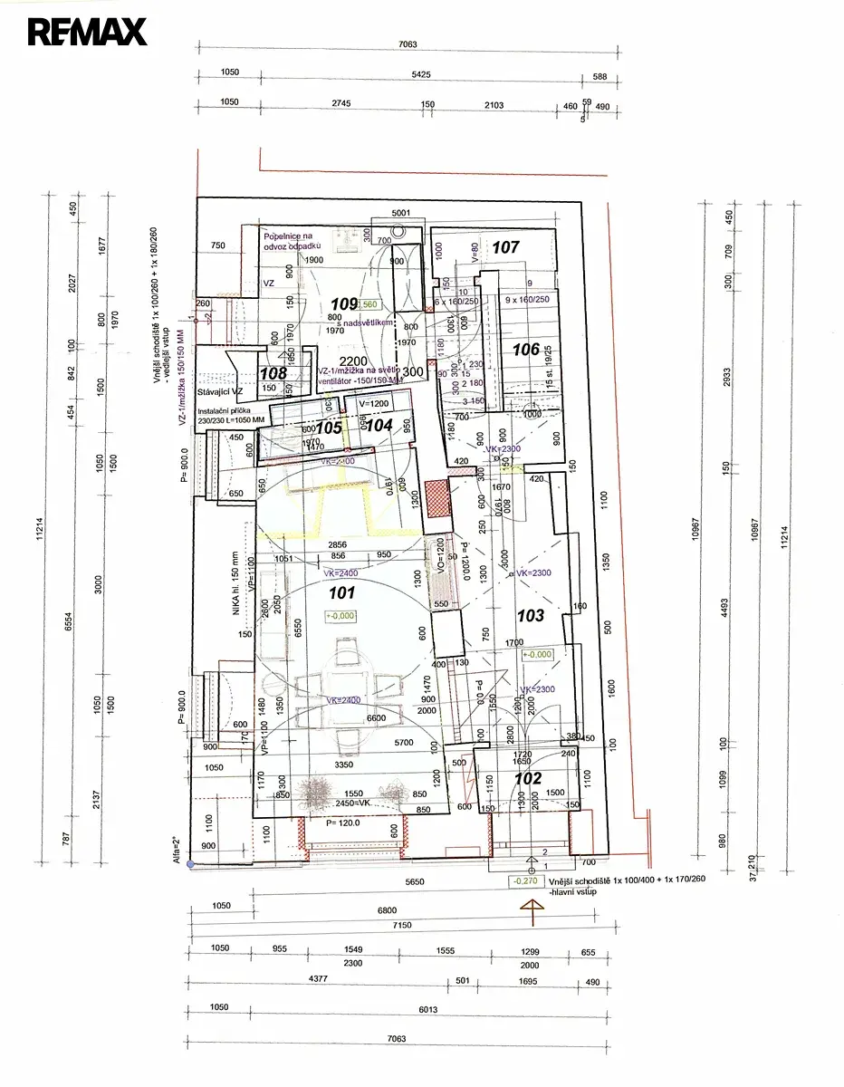 1. NP: Jednací místnost s kuchyňským koutem, samostatné WC, sklad a chodba s technickým zázemím.