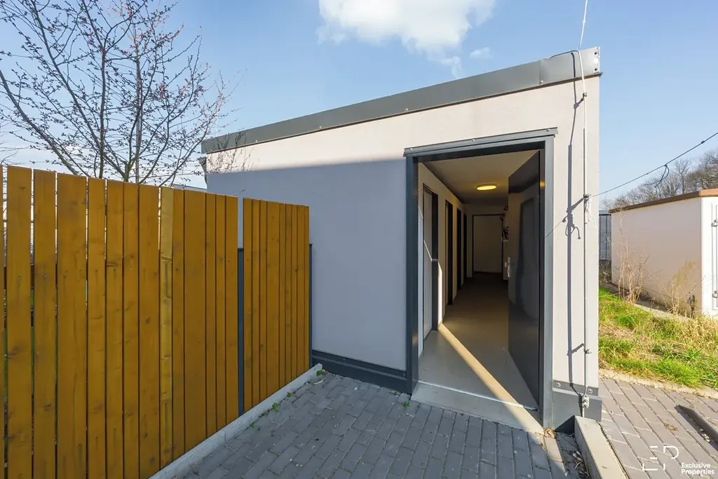 Byt je umístěn ve 2NP dvoupodlažní zděné Budovy energetické třídy A o dispozici 3+kk o celkové ploše 72m2 bez teras a sklepa. Netradičně pro 2 jednotky, vždy jeden společný vchod. Orientace ložnice na severovýchod, obývací pokoj a kuchyň na jih, jihozápad. Na obě strany budovy situovány kryté terasy o ploše 20,6m2, u obývací pokoje přes celou šíři bytu prosklený HS portál na terasu o ploše 13,6m2 s výhledem do přírody a Ctěnického háje. Opravdové soukromí. Bytový dům celkem 16 bytových jednotek.