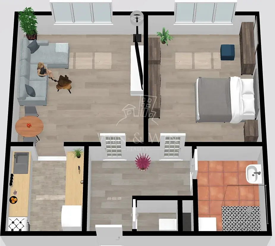 Ve výhradním zastoupení Vám naše společnost zprostředkuje pronájem moderně řešeného slunného bytu 2+kk 47 m2 v klidné oblasti Vršovic vzdálené pouhé 4 minut od parku Grébovka. Bytová jednotka se nachází v 2. patře cihlového domu a má okna orientovaná na jižní stranu do poklidného zeleného vnitro bloku. Bytová jednotka byla kompletně zrekonstruována. Rekonstrukce byla provedena odbornou firmou a byli použity kvalitní materiály a několik příjemných detailů (dotykový vypínač v kuchyni a jiné). V kuchyni naleznete novou kuchyňskou linku s přípravou na myčku. Rozvody UPC po celém bytě. Vchodové dveře jsou bezpečnostní a protipožární.