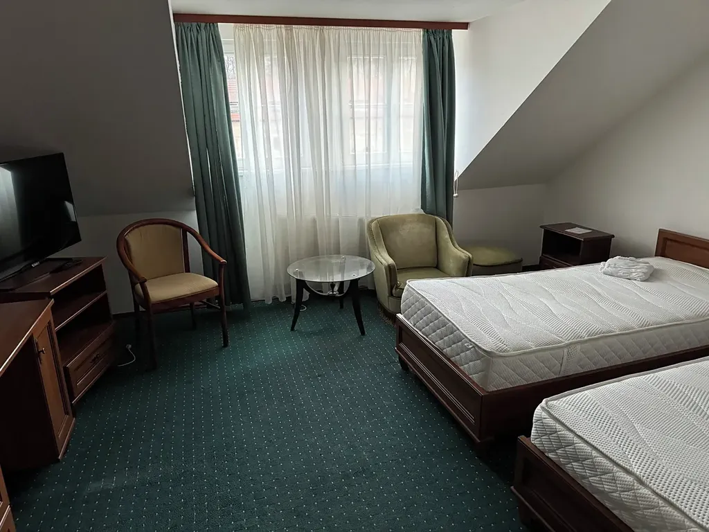Hotelových pokojů je 13. Každý pokoj má předsíň, koupelnu s WC, sprchou a umyvadlem. Dále jeden apartmán se dvěma pokoji, koupelnou s WC a předsíní.