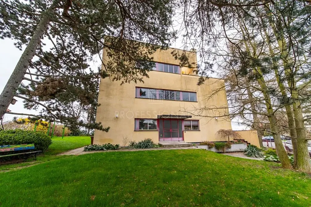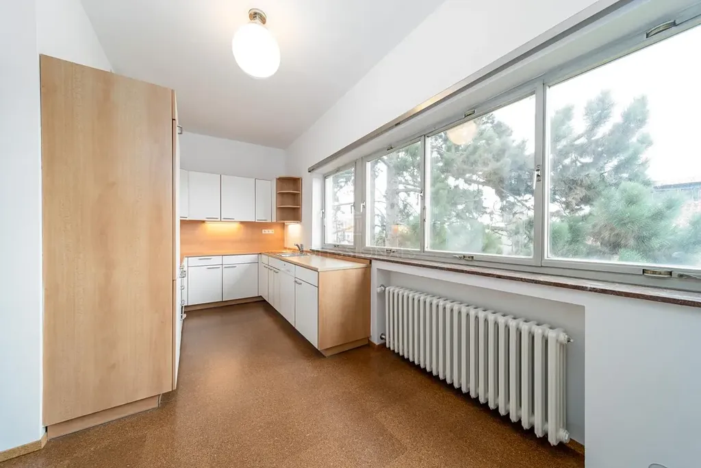 Nabízíme k pronájmu nádherný byt 2+1 o ploše 95 m², situovaný v posledním podlaží funkcionalistické vily na Hanspaulce. Byt nabízí vstupní chodbu, prostorný obývací pokoj se vstupem na balkon, ložnici, plně vybavenou kuchyni, koupelnu s vanou a separátní toaletu. Díky umístění v posledním podlaží, velkorysému prosklení a orientaci na jihovýchod a jihozápad je byt přirozeně prosvětlený po celý den a nabízí krásné výhledy na celou Prahu. V bytě je nainstalována klimatizace i zabezpečovací systém.K bytu náleží také přístup na sdílenou střešní terasu o velikosti 52 m². K dispozici je i společná prádelna a sklepní kóje v suterénu domu.Funkcionalistická vila Dr. ing. Eustacha Mölzera z roku 1938 je architektonickou památkou. Výjimečná stavba s ocelovým skeletem stojí na rohovém pozemku bývalé Kodymovy zahrady a byla navržena diagonálně k parcele tak, aby z bytů nabízela nerušené výhledy na panorama Prahy a zároveň zachovala původní vzrostlou zeleň. Ve vile se nacházejí pouze tři bytové jednotky, což zajišťuje klidné a komorní bydlení.Nemovitost se nachází v klidné rezidenční části Prahy 6 s výbornou dostupností do centra. Zastávka autobusu je v blízkosti domu s rychlým spojením na metro A. K nastěhování ihned. Poplatky nejsou zahrnuty v ceně nájmu.