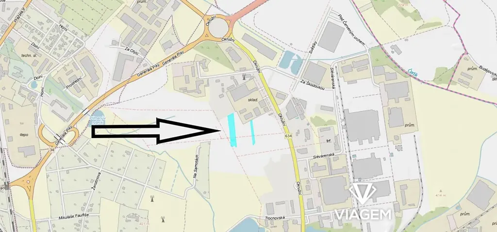 V územním plánu určeno pro výrobu, sklady a podnikání