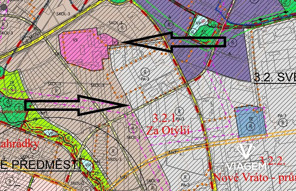 Aktuální využití a funkční zařazení odpovídá platnému územnímu plánu. Potenciální rozvoj či změna funkčního využití pozemků podléhá schválení příslušnými orgány územního plánování.