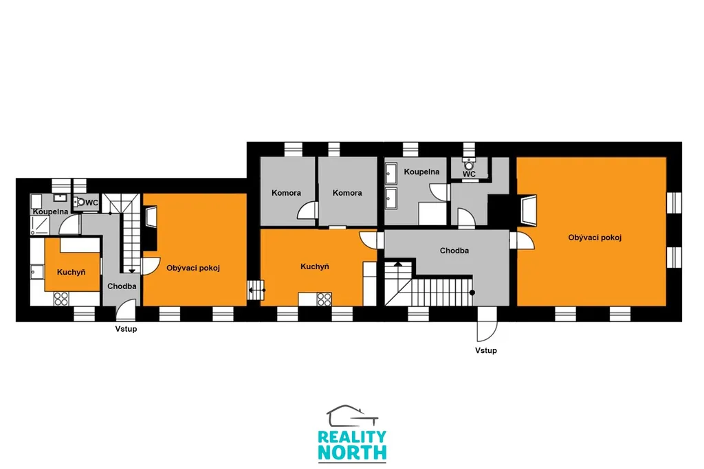 Nemovitost skýtá obrovský potenciál díky vícegeneračnímu bydlení, jelikož jsou zde dva rodinné domy se samostatným vchodem.