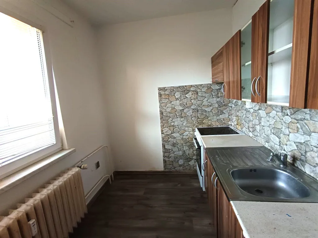 Jedná se konkrétně o byt o dispozici 3+1 a podlahové výměře 63 m2 (výměra zahrnuje lodžii a sklep), který se nachází v 8. patře zrekonstruovaného panelového domu s výtahem. Byt je určen k rekonstrukci.