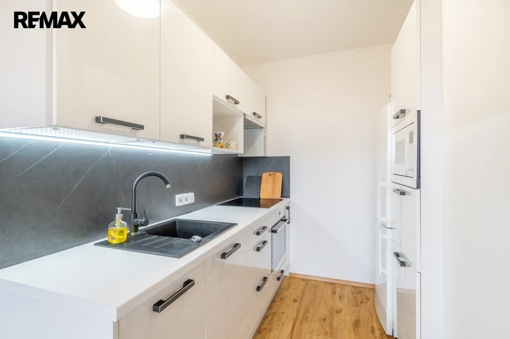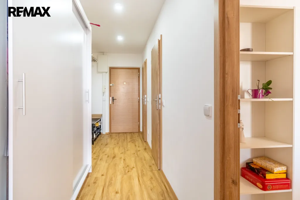 Byt o podlahové ploše 45 m² doplňuje balkon o velikosti 3 m² a sklepní kóje. V roce 2022 prošel kompletní rekonstrukcí, která zahrnovala nové bytové jádro, koupelnu, podlahy i moderní kuchyňskou linku vyrobenou na míru. Dispozice je řešena prakticky – obývací část s kuchyňským koutem je vzdušná a prosvětlená, na kterou navazuje jídelní prostor. Samostatná ložnice nabízí příjemné zázemí pro klidnou část bytu. Koupelna je moderní a funkční. Součástí bytu je také předsíň s velkou skříní a praktická komora.