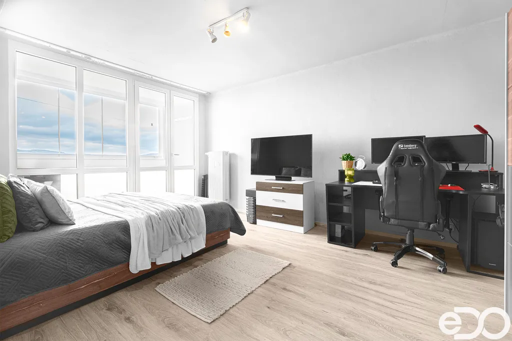 Pro maximální komfort je v bytě klimatizace a venkovní žaluzie, které zajistí příjemné prostředí po celý rok.