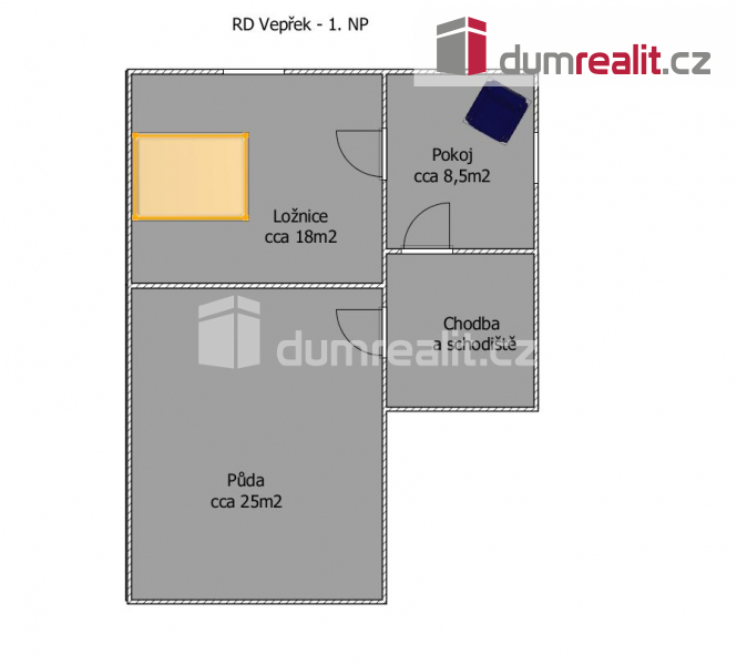 V 1.patře je místnost o velikosti cca 8,5 m² z které je dále možné vstoupit do ložnice cca 18m² a na půdu. Dům je napojený na elektřinu 220/380V, plyn, kanalizaci, vodu z řadu, studniční vodu pro zahradu (nová domácá vodárna), pevnou linku, novou anténu se zesilovačem pro příjem DVB-T2. Rekonstrukce v domě zahrnovala Instalaci nového sporáku, akumulačních kamen obložených keramikou (zapojené 08/19), krbová kamna. Montáž kompletních nových rozvodů vody v PVC, nové odpady včetně kanalizační přípojky kolaudace 12/019. Byla vyměněna střešní krytina 2024 nový plynový kotel a zásobník na teplou vodu, ústřední topení s radiátory 2021, střešní okna v půdním prostoru. Komín je vyvložkovaný. V přízemí domu je rozvedena nová elektřina v mědi Cyky 2,5 nové jističe, zásuvky. V patře je elektřina v mědi starší. Podlahovou krytinu tvoří keramická dlažba v koupelně, WC, kuchyni, obýváku, schodišti do patra. Chodba v přízemí nové PVC dekor dřevo. V celém domě jsou nová plastová okna s žaluziemi a sítěmi proti hmyzu. Dům má z větší části opravenu fasádu rovněž tak i přístavek s dílnou a skladovými prostory. Na zahradě je skleník s betonovými základy, venkovní udírna s krbem, studna. Ze stromů je zde vzrostlý ořech a tis, dále ovocné stromy. Dále pak podzemní sklep o velikosti 4,5m². Ve zděném přístavku se nachází skladový prostor pro dřevo, sklad pro nářadí a materiál. Při bráně domu se nachází dílna cca 18 m². V blízkosti domu se nachází mateřská školka, 2 x restaurace, obchod s potravinami, pošta, zastávka PID pravidelné spoje, 1 km je zastávka vlaku Nové Ouholice-Praha. Obec se nachází 1km od exitu 18 D8 směr Praha. Vyšší občanská vybavenost nejblíže ve městě Veltrusy vzdáleném 5km kde je i státem chráněná oblast zámecký park Veltrusy 298 ha, dále pak v Kralupech nad Vltavou 7km, Mělník 13km, Praha 18km. Ev. číslo: 655325.