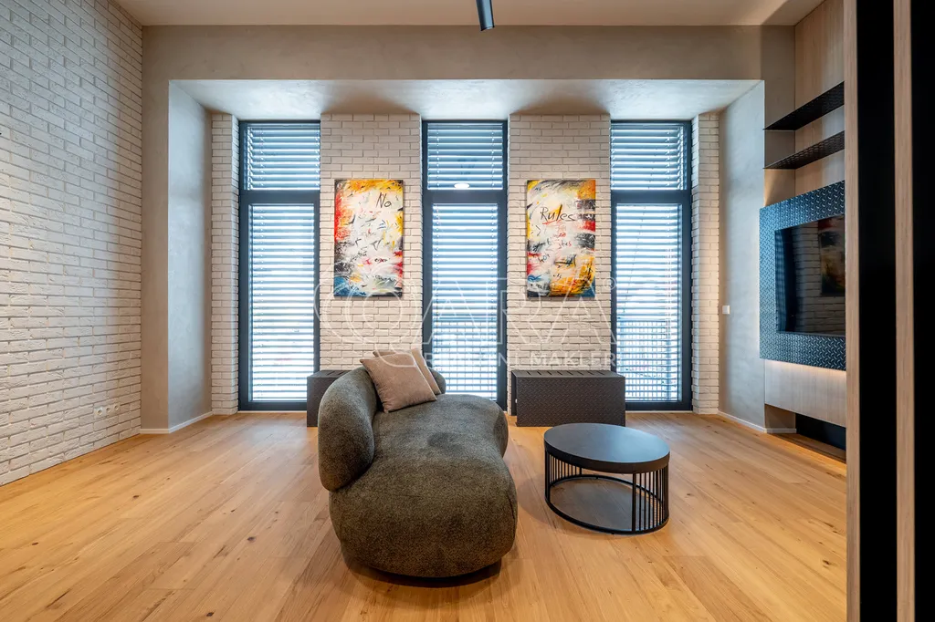 Nadstandardní byt s důrazem na detail nabízí celkovou podlahovou plochu 43 m² + spací patro o velikosti 10 m² (s výškou stropu 130 cm), balkon 3 m² a sklep 3 m². Nachází se v moderním projektu v srdci jedné z nejžádanějších pražských čtvrtí.