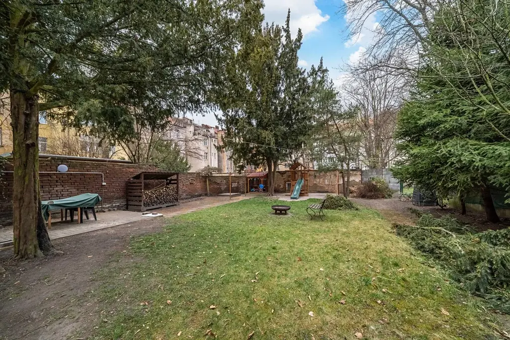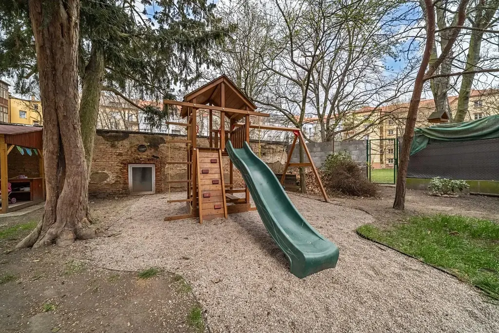 V domě je k dispozici výtah a příjemným bonusem je možnost využívání zahrady ve vnitrobloku, ideální pro odpočinek nebo posezení.