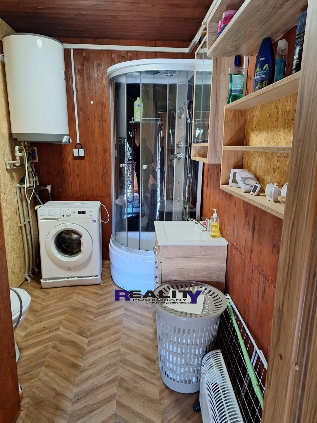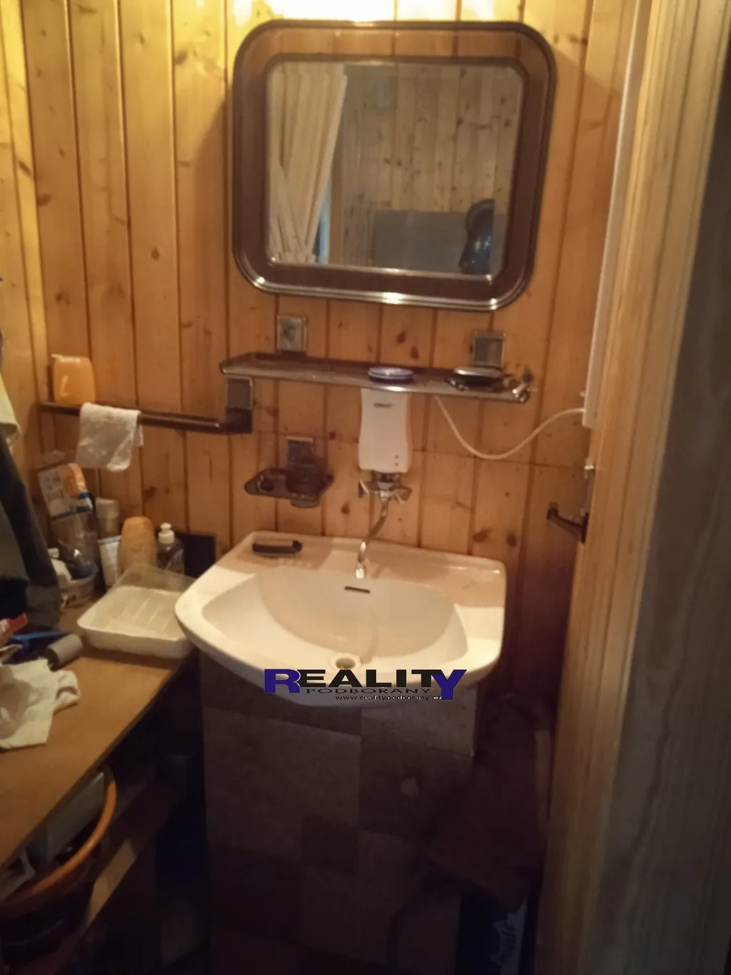 Dispoziční uspořádání do tvaru písmene " L " : celkem 4 obytné místnosti, v přízemí dvě samostatné místnosti spojené verandou + koupelna se sprchovým koutem. V podkroví další dvě samostatné místnosti, vhodné jako pracovna či ložnice. Díky tomuto stavebnímu uspořádání je pobyt také vhodný i pro početnější rodinnou rekreaci nebo 2 rodiny, případné dlouhodobé návštěvy či víkendové pronajímání. Vytápění zajišťují kamna na tuhá paliva, sporák je na plynovou bombu. Chata je zateplená a zařízená, vstupy do jednotlivých přízemních místností jsou zabezpečené venkovními mřížemi včetně oken. V přízemí jsou dřevěná okna, v patře nová plastová. Pod chatou jsou uzavřené prostory na úschovu nářadí, apod.