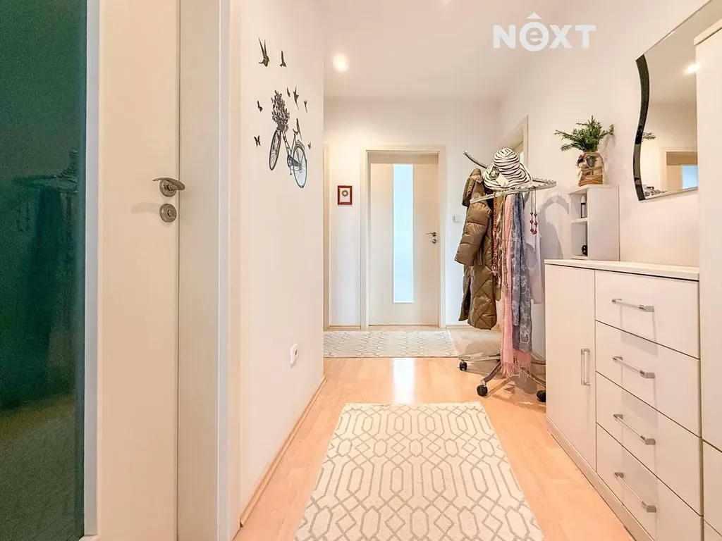 Byt je světlý, prakticky řešený a vybavený klimatizační jednotkou, díky které je zajištěn komfort i v nejteplejších dnech. Součástí bytu je velká koupelna spojená s WC, která je vybavena vanou a nabízí dostatek prostoru pro veškeré koupelnové vybavení. Velkým benefitem je také prostorná předsíň, která poskytuje široké možnosti pro úložné prostory, vestavěné skříně nebo další vybavení podle představ nového majitele. Dispozice dále zahrnuje dvě útulné ložnice a obývací pokoj s kuchyňským koutem a přímým vstupem na terasu.