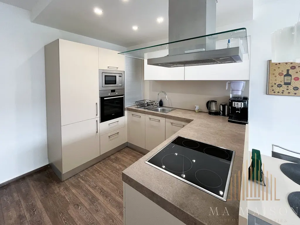 Byt se nachází ve 4. patře moderní novostavby s výtahem a sestává ze vstupní předsíně, koupelny s toaletou, obývacího pokoje s kuchyňským koutem a samostatné ložnice. Byt se nabízí jako nevybavený. Kuchyňská linka je součástí obývacího prostoru a nabízí dostatek úložného místa, je vybavena varnou deskou, troubou, digestoří a lednicí s mrazákem.