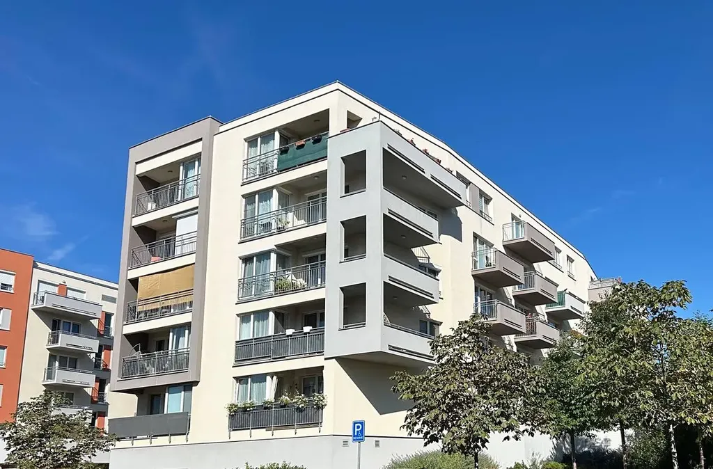 K bytu náleží parkovací stání v podzemní garáži a praktický sklep (3,8 m²), situovaný hned za stáním, zabezpečený bezpečnostní mříží.