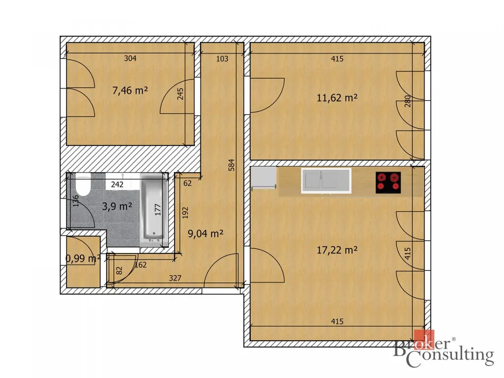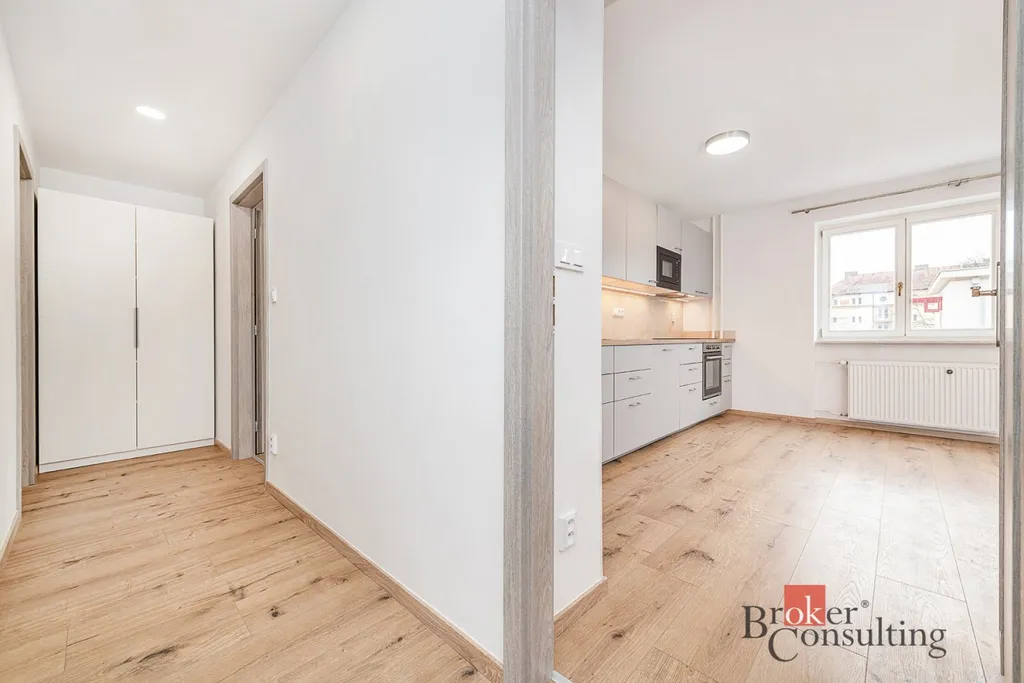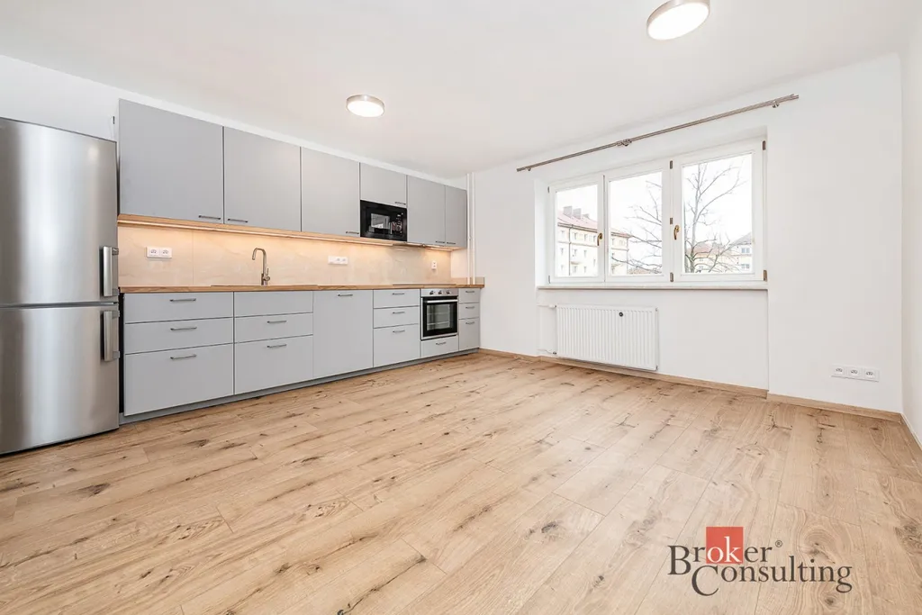 Nabízíme k pronájmu moderní byt o dispozici 3+kk, který právě prošel celkovou rekonstrukcí. Byt se nachází ve 2. nadzemním podlaží cihlového domu a kombinuje vkusný design s praktickým řešením úložných prostor.