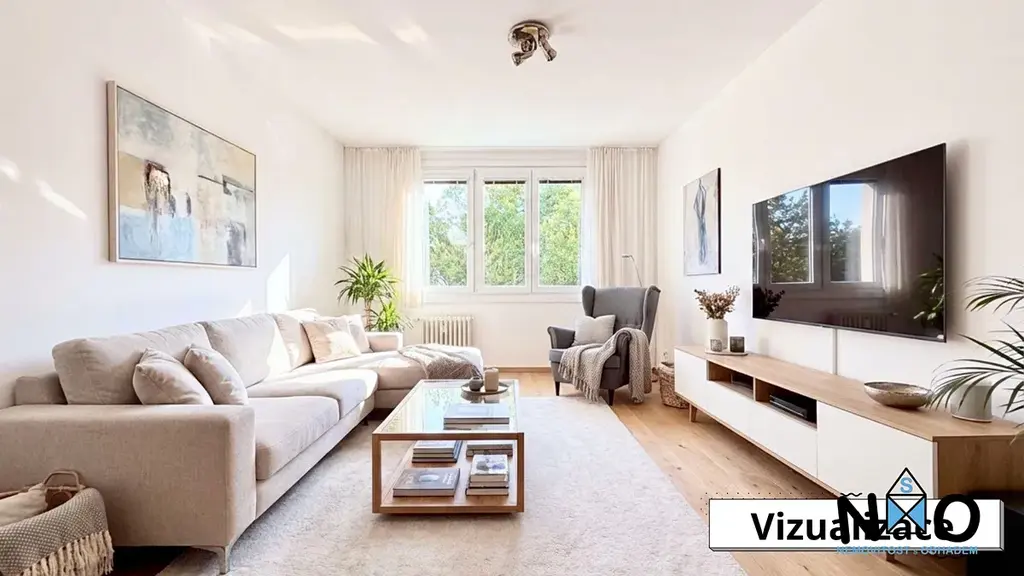 Díky praktickému uspořádání nabízí dostatek prostoru jak pro jednotlivce a páry, tak pro menší rodinu. Velká okna zajišťují dostatek denního světla v celém bytě.