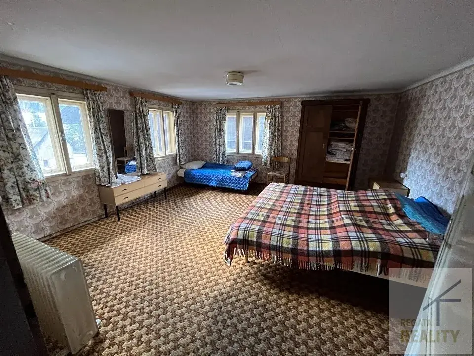 Ideální pro rekreaci pro vaši větší rodinu nebo skupinu přátel. Nabízí několik ložnic, koupelnu s toaletou, samostatnou toaletu, kuchyň, obývací pokoj, úložné prostory, parkování před domem a je vybaven několika kamny, sporákem na dřevo a elektrickými radiátory pro vytápění.