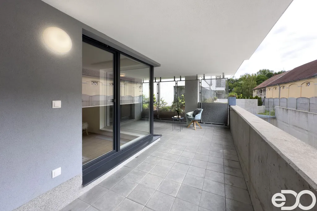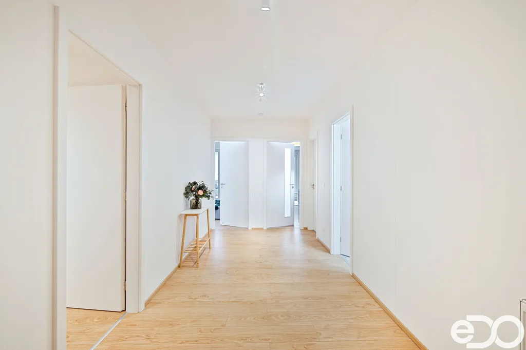 Další velkou výhodou je druhá šatna, která je přístupná přímo z prostorné chodby. Díky velkým oknům působí byt velmi vzdušně a prostorně a zároveň máte výhled na celou terasu, která s plochou 20m2 patří k těm větším. Parkovací stání je umístěno v suterénu budovy, hned u vjezdu a velkou výhodou je také vlastní sklepní koje, která nebývá u novostaveb pravidlem.