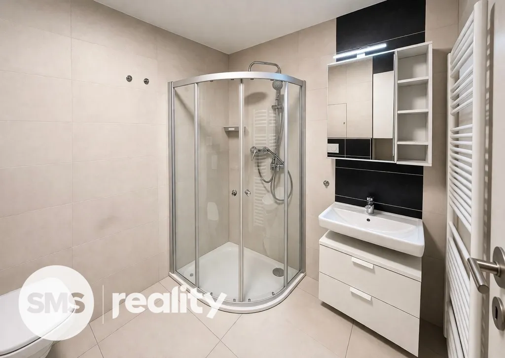Byt je částečně vybaven: kuchyňská linka se spotřebiči (lednice, sporák, myčka), pračka, skříně, jídelní stůl.