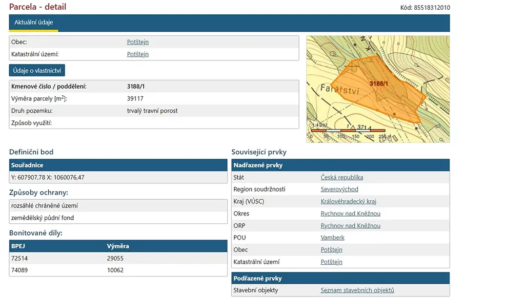 Prodej louky, Potštejn, 52202 m2 (ID: 2857369)