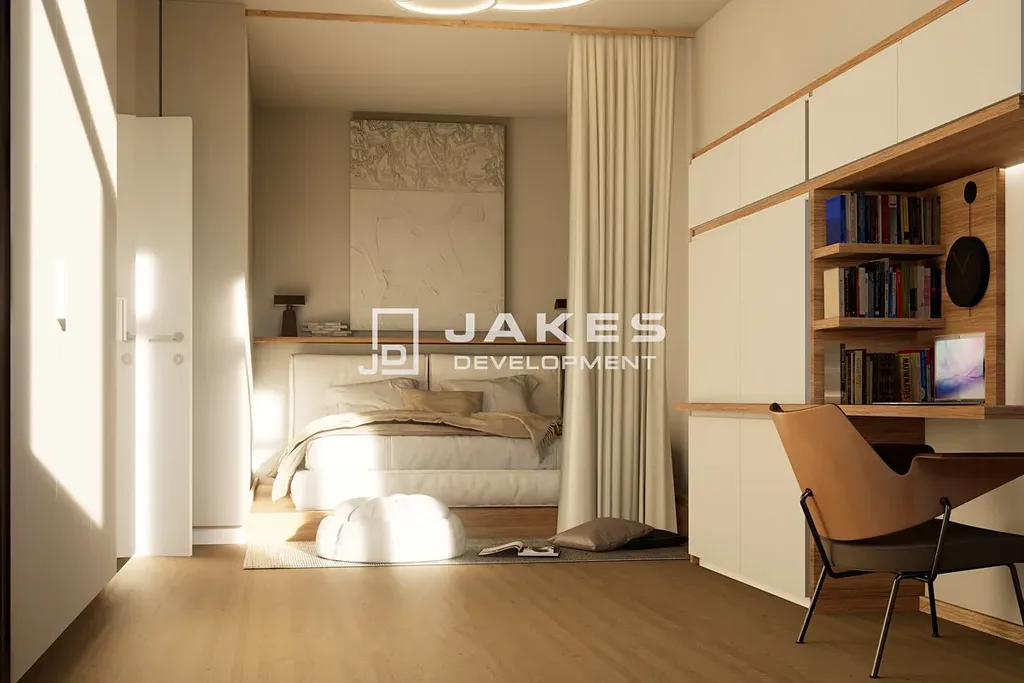 Za příplatek je možné využít balíček Ready to Rent, který zahrnuje kuchyňskou linku se spotřebiči, osvětlení a garnýže, díky čemuž je byt připraven k okamžitému nastěhování nebo pronájmu bez dalších investic.