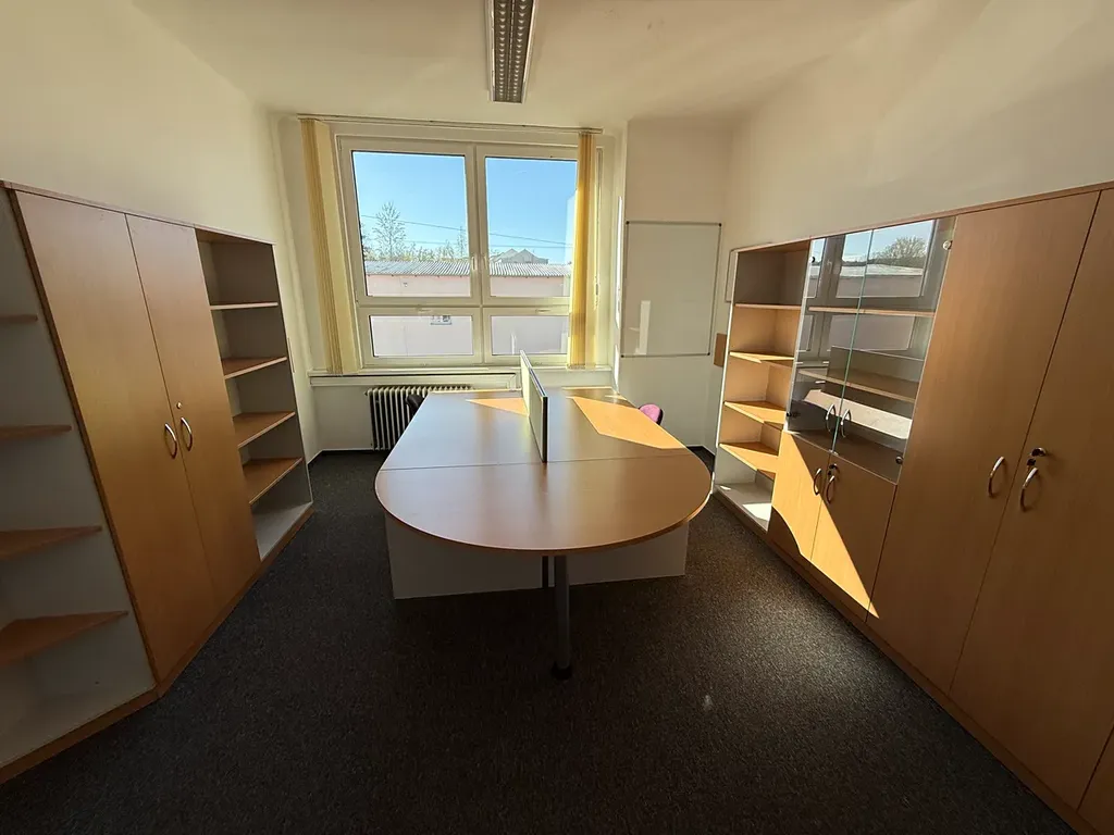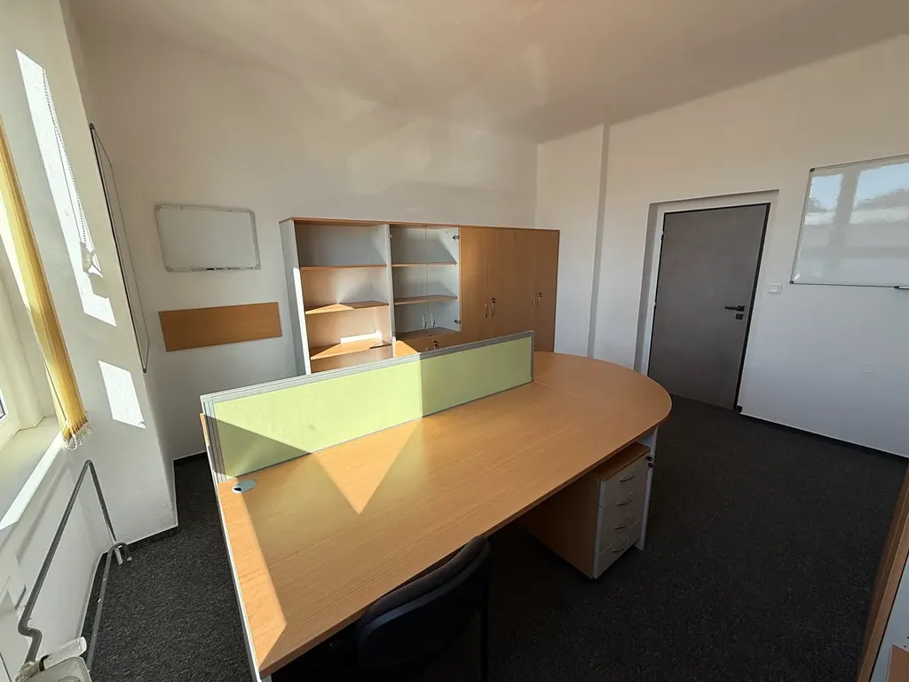 Jedná se o samostatnou kancelář, která se nachází v prvním patře jednopodlažní budovy. Užitná plocha o velikosti 19 m² je dostatečná pro 2 pracovní místa. Díky dvěma parkovacím místům přímo u objektu se nemusíte obávat problému s parkováním, což je velmi praktické pro zaměstnance i návštěvníky.