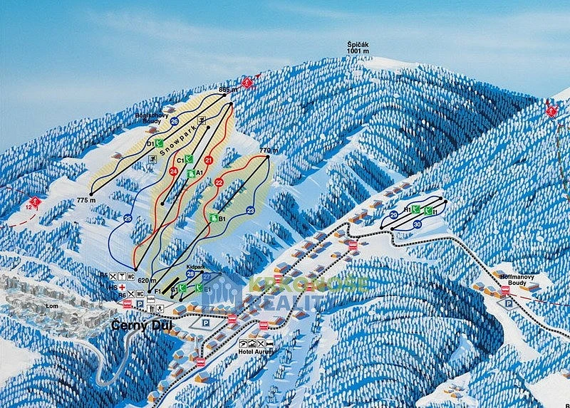 Další lyžařská a rekreační střediska – Mladé Buky (13 km), Herlíkovice – Bubákov (17 km), Špindlerův Mlýn (25 km).