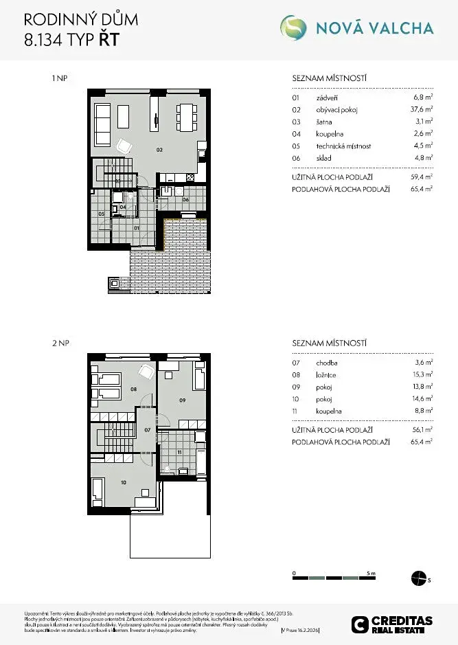 Dovolujeme si vám nabídnout rodinný dům 8.134 s dispozicí 4+kk o celkové výměře 131 m² a zahradou o výměře 102 m², který je součástí připravované 8. etapy projektu Nová Valcha.