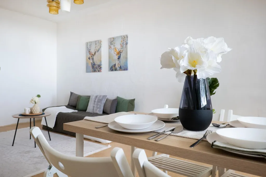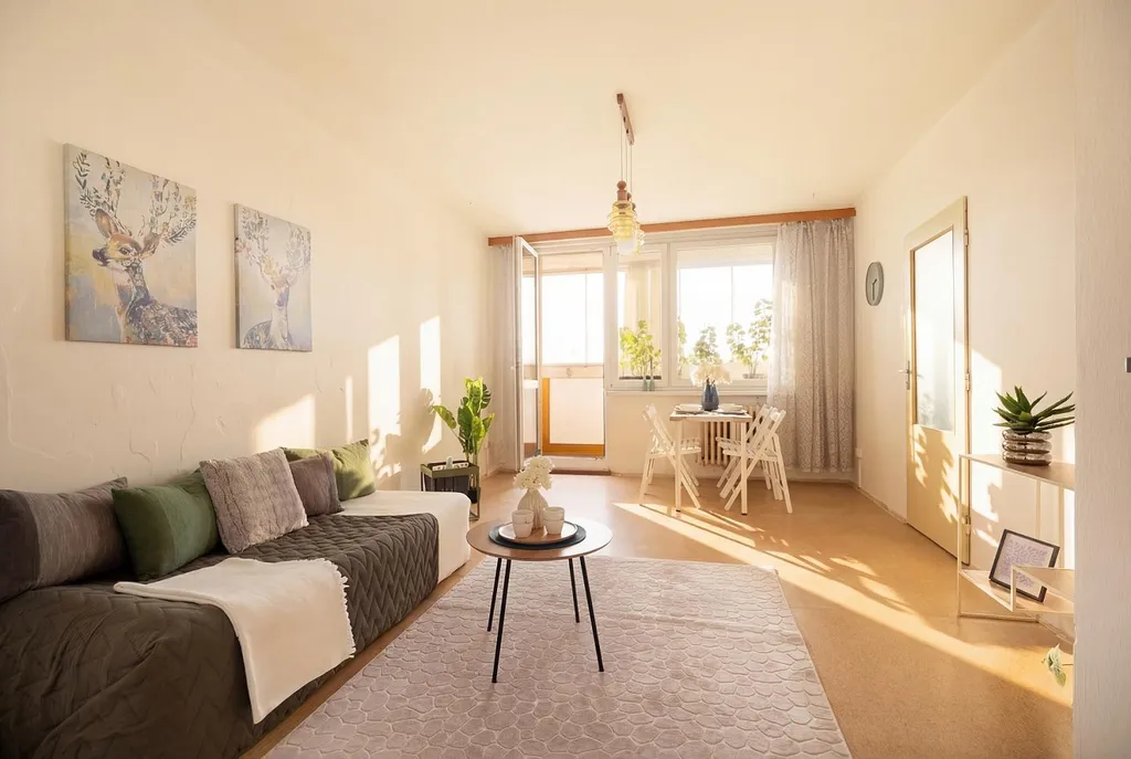 Dominantou bytu je světlý obývací pokoj, který tvoří přirozené centrum domácnosti a nabízí dostatek prostoru pro pohodlné posezení i rodinná setkání. Na obytnou část navazuje kuchyně s jídelnou, která vytváří příjemné místo pro společné stolování a každodenní rodinný život. Dispozice kuchyně zároveň umožňuje pohodlné uspořádání kuchyňské linky i dostatek prostoru pro jídelní stůl.