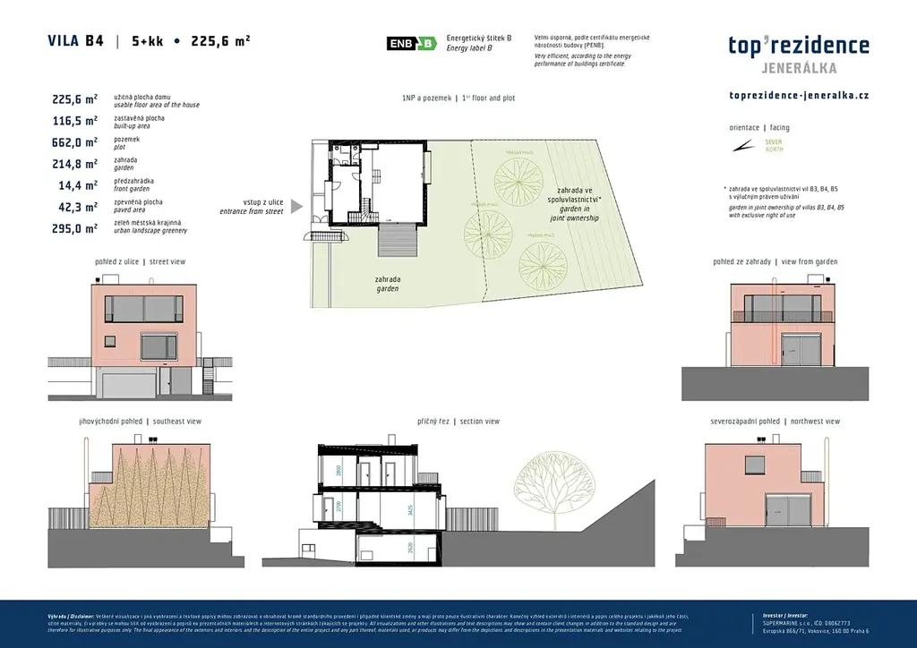 Samostatně stojící vila s označením TRJE.B4, s dispozicí 5+kk s užitnou plochou 225,6 m2 a se zahradou 214,8 m2 je navržena architektonickým ateliérem Abtsmolen v duchu koncepce Raumplanu.