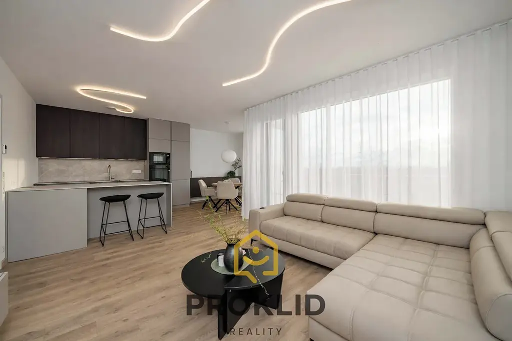 Velkou výhodou je zde komora navržená jako další místnost, která Vám spolu s vestavěným nábytkem kolem pračky a sušičky zajistí další úložný prostor. Byt je vybaven nábytkem na míru z prémiových materiálů, záclonami na míru a kvalitním osvětlením, kuchyně je osazena kvalitními spotřebiči značky Samsung.