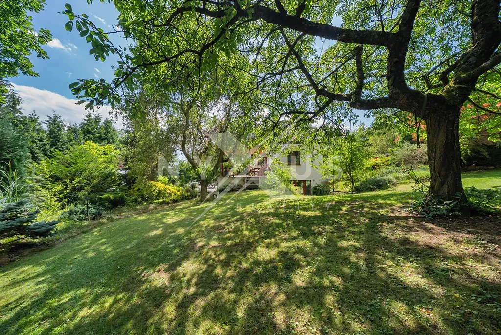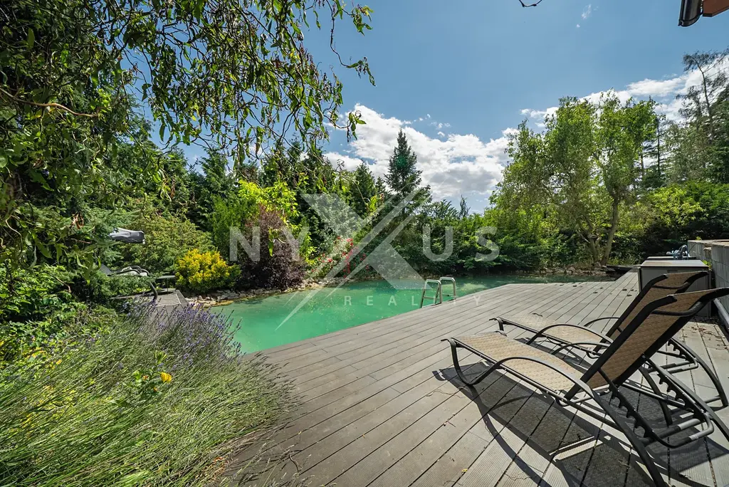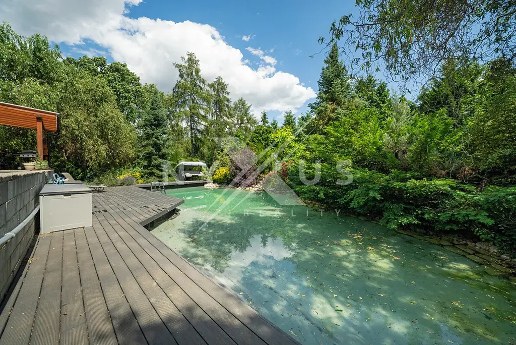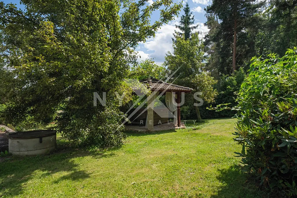 Výhodou je zděná chata a k relaxaci vybízí také krásný altán s vířivkou. Dále vlastní jezírko s filtrací a ohřevem na koupání , které je připojené na rozlehlou terasu 200 m² s pergolou, kde je příjemné dát si ranní kávu a užívat si klid tohoto kouzelného místa. Zahrada je osazena vzrostlými tújemi, okrasnými a ovocnými stromy. K dispozici je i projekt na rozšíření současné stavby. Na pozemku se nachází ještě další základová deska 100 m², kde byla zamýšlena výstavba garáží.