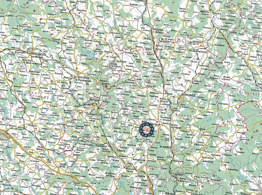 Žernovník u Černé Hory, celková výměra 37 071 m2, k prodeji je pak určena výměra 9 268 m2.