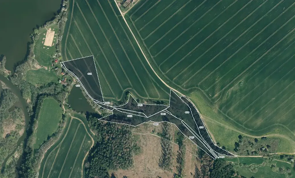 Pozemky jsou zapsány na listu vlastnictví 528 a jedná se o parcely: 653/1, 655/2, 656/2, 789/1, 789/6, 789/7, 794/2, 4121, 4122, 4124, 4126, 4130. Pozemky se rozprostírají podél vodních ploch a lesa.