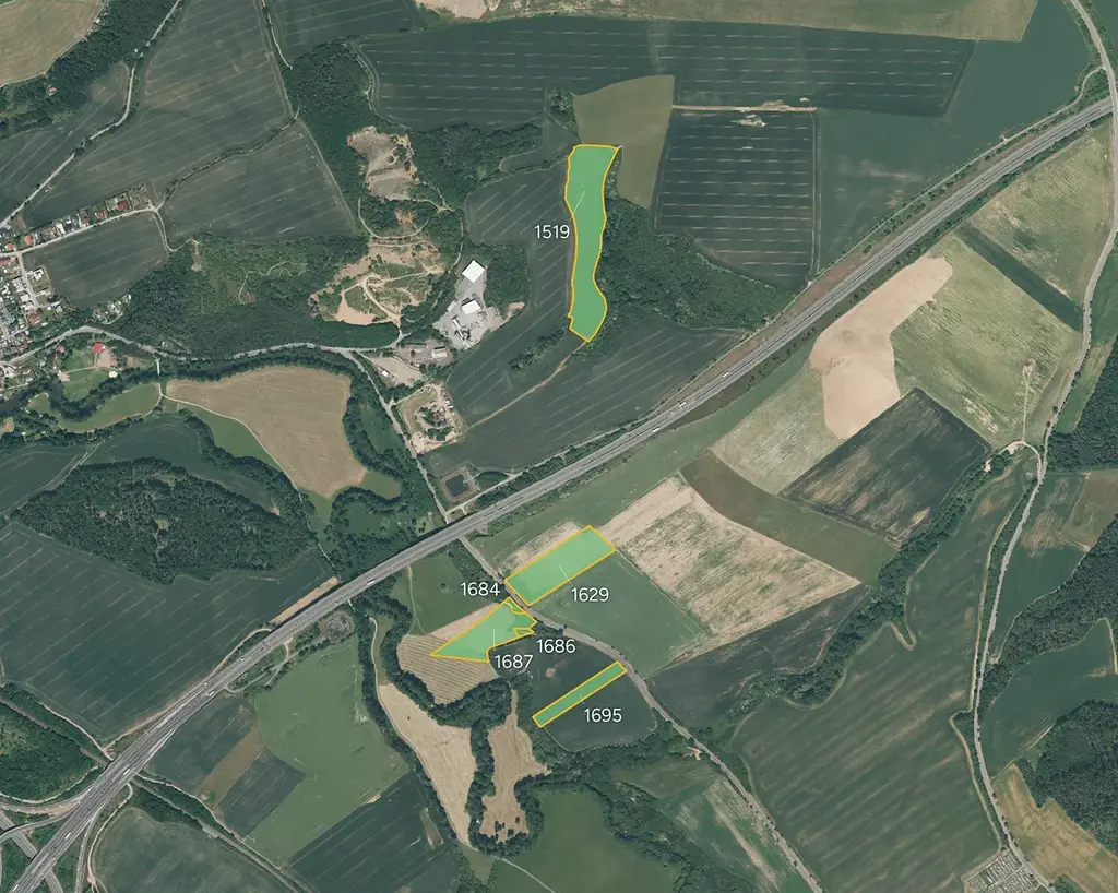 Jedná se o parcely č. 1519, 1629, 1684, 1686, 1687 a 1695 o celkové výměře 59 266 m². Pozemky jsou kombinací trvalého travního porostu a orné půdy.