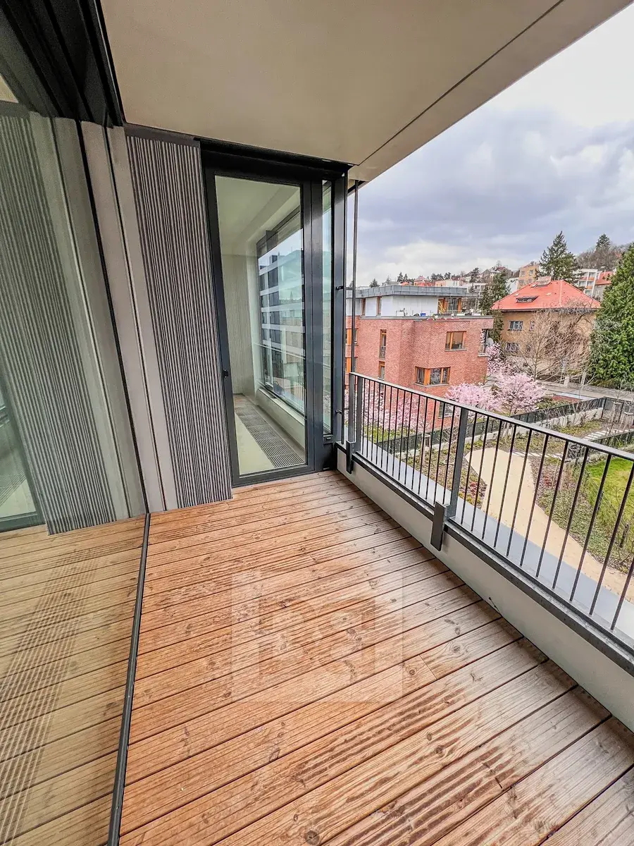 Byt je proveden ve vysokém standardu, samozřejmostí je klimatizace. Vytápění a ohřev vody jsou centrální, topení je podlahové. Byt se nachází v klidné a atraktivní lokalitě s výbornou dostupností do centra Prahy.