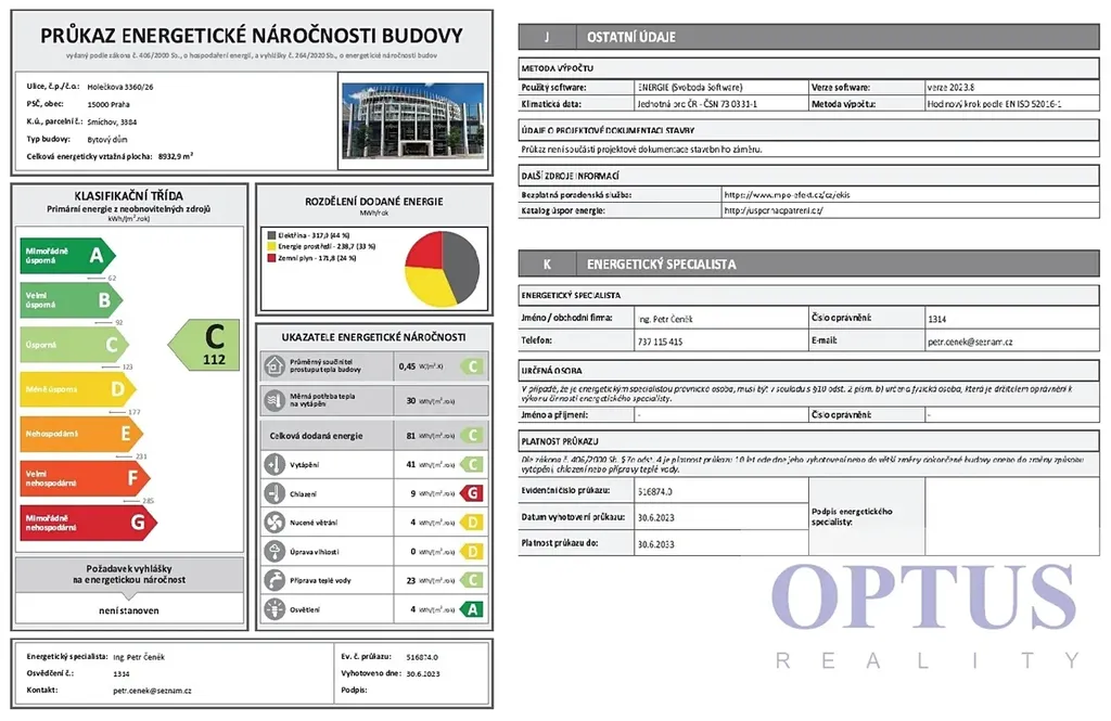Třída energetické náročnosti budovy je dle vyhlášky č. 264/2020 Sb. klasifikována jako C.