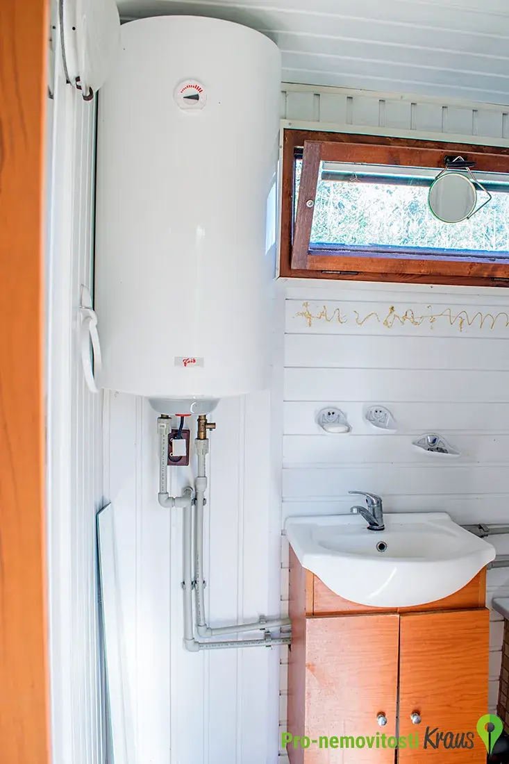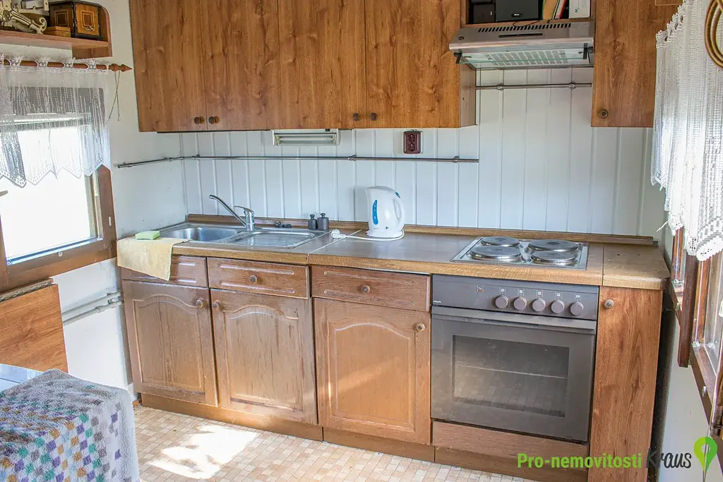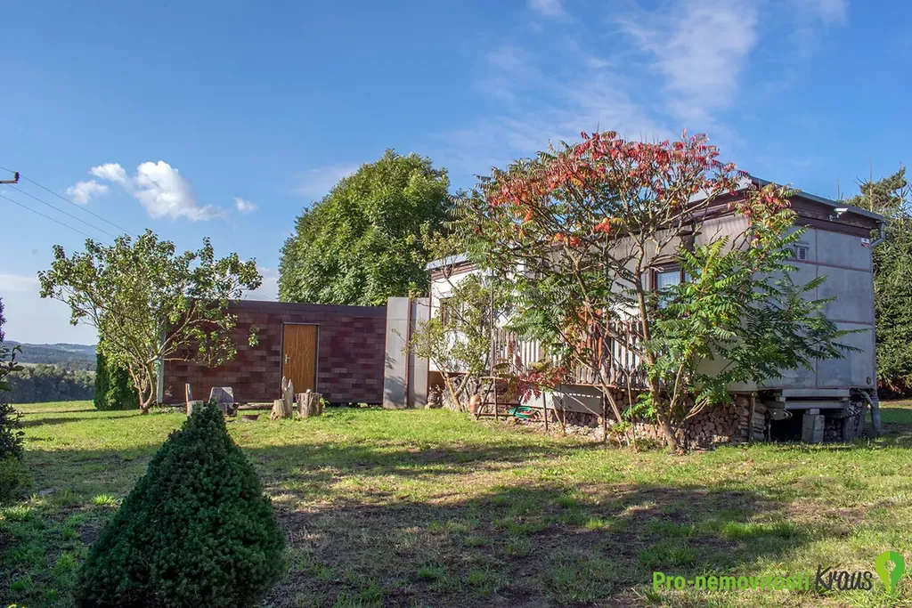 Na pozemku stojí zařízená, celoročně obyvatelná maringotka. Vybavení – kuchyň, bojler na ohřev vody, obývací pokoj s krbovými kamny. Maringotka je zateplená s izolačními dvojskly. Dále je na pozemku umístěna stavební buňka. Obě stavby možno využít při případné budoucí výstavbě domu na pozemku jako zázemí výstavby.