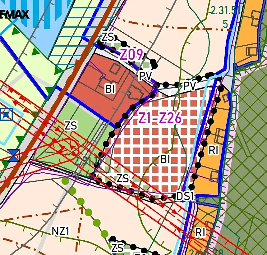Velmi malá část pozemku patří do plochy ZS – zeleň soukromá a vyhrazená.