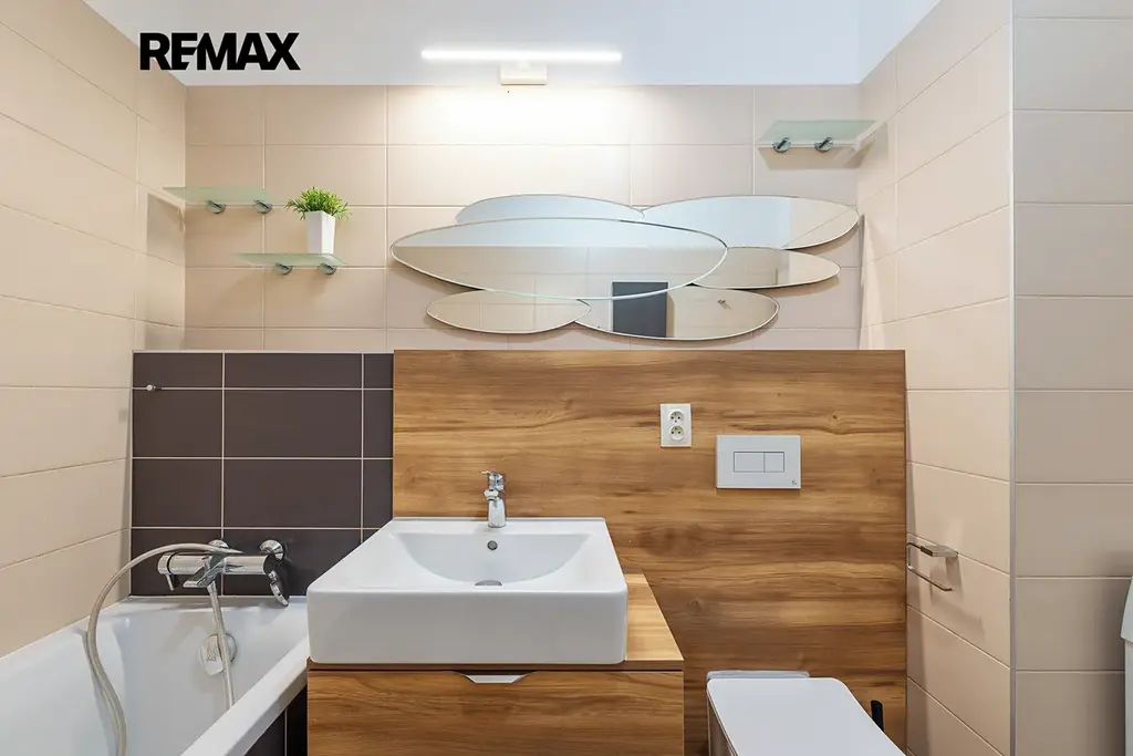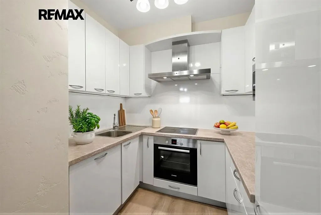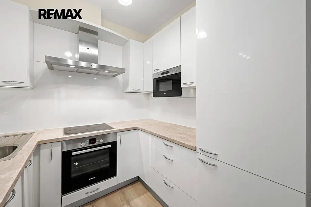 Dominantou bytu je velkorysý obytný prostor s kuchyňským koutem, který plynule navazuje na nadstandardně velký balkon – ideální místo pro ranní kávu, večerní relax či posezení s přáteli. Díky této kombinaci byt působí mnohem vzdušněji a nabízí výrazně více prostoru než běžné jednotky 2+kk v této lokalitě.