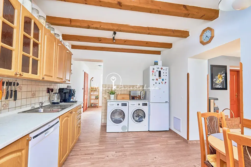o dispozici 3+1 a 3+1, každá s vlastním zázemím, což zajišťuje dostatek soukromí pro jednotlivé domácnosti. Celková užitná plocha domu činí cca 231 m². Velikost pozemku je 477 m2.