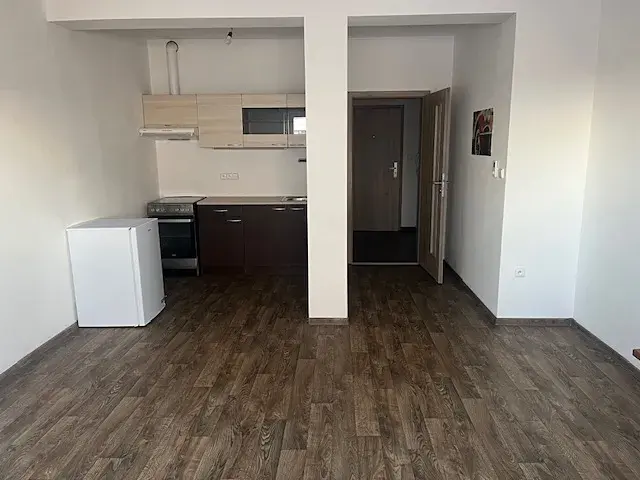 Byt je útulný, vybavený kuch. linkou, sporákem s troubou a ledničkou.