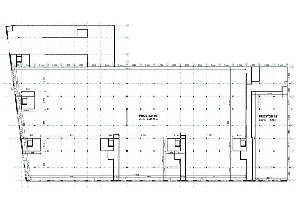 Základní jednotka má výměru 444 m², další části lze připojit až do výše celé plochy, a to po modulárních blocích od cca 600 m². Díky velkým výkladcům do ulice je prostor ideální pro jakýkoli provoz, který chce být vidět – ať už jde o gastronomii, showroom, obchod, služby, fitness, kanceláře nebo zdravotnické zařízení.