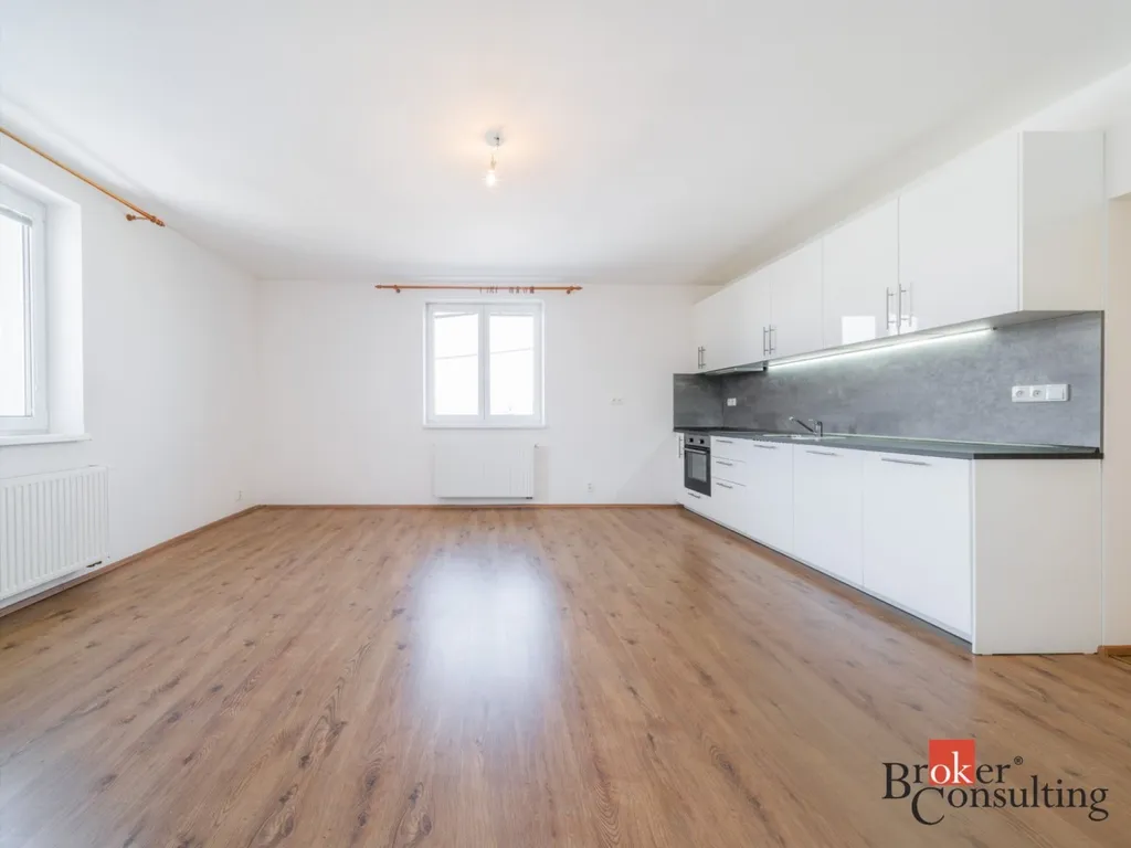 Chytrá dispozice: Interiér je prosvětlený, vzdušný a připravený na vaše nápady. Ideální pro single život, startovací bydlení pro pár.