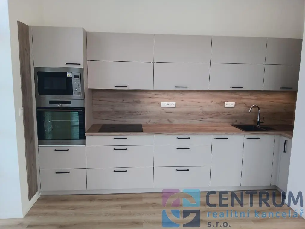 Byt je světlý a slunný (JZ), elegantní interiér je tvořen vstupní chodbou (8.4 m2) s vestavěnou skříní, vzdušnou prostornou obytnou kuchyní (32 m2) se vstupem na balkón. Je zde designová kuchyňská linka s vestavěnými spotřebiči - indukční varná deska, horkovzdušná trouba, microvlnná trouba, myčku nádobí (45 cm). Dále je zde prostorná ložnice (13.9 m2), moderní koupelna (4.3 m2) se sprchovým koutem a místem na pračku i sušičku, samostatná závěsná toaleta (1.3 m2). Vytápění celého bytu je řešeno podlahovým vytápěním v kombinaci s rekuperací. Kvalitní interiérové bezfalcové dveře a vinylové podlahy. Nájemné od 1.6.2026 vč. parkovacího místa - 20.000,-Kč + kompletní služby vč. elektřiny 3.800,-Kč / 2 osoby + internet (ANET optický kabel) na vlastní smlouvu. Vratná kauce 54.000,-Kč.
