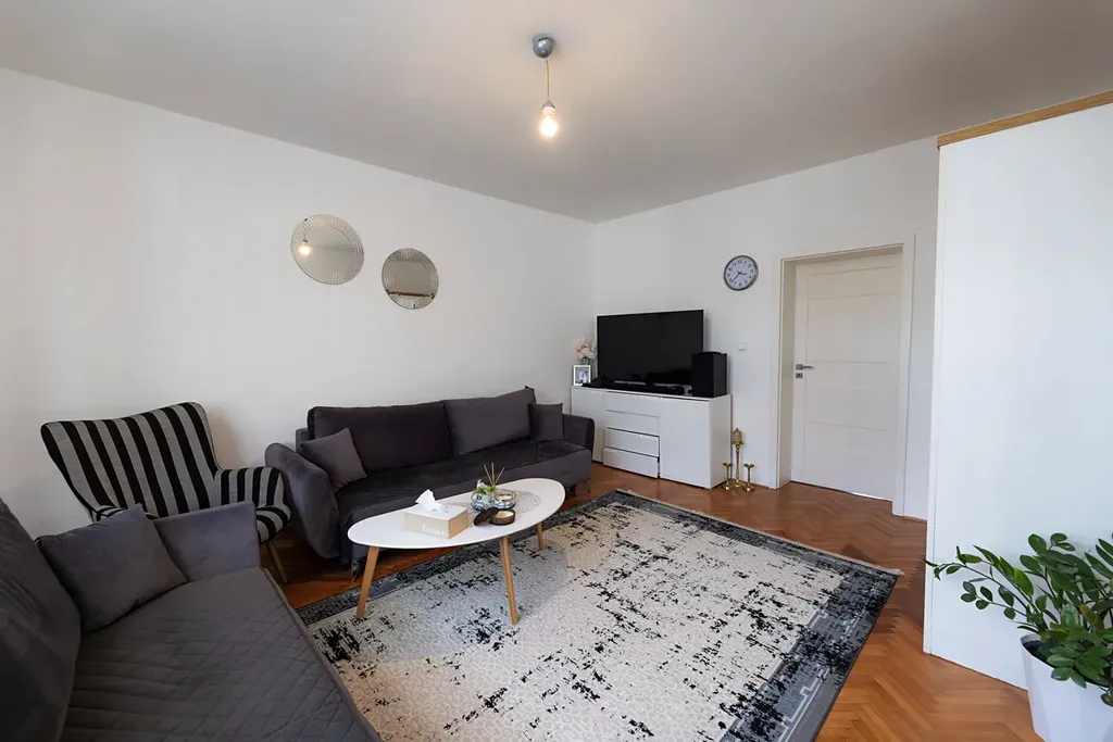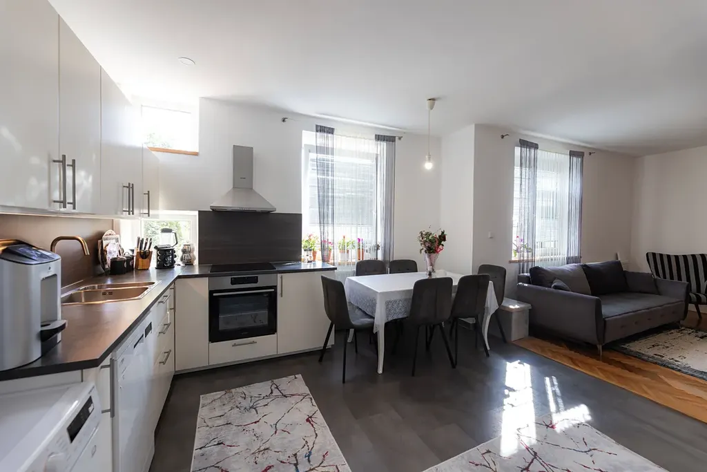 1NP byt 3+1 o výměře 83,3m2 (+sklep 20m2, garáž ve dvoře 12,5m2). Tento byt prošel kompletní rekonstrukcí v roce 2021.