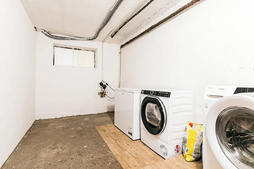 K hlavním benefitům této koupě patří příslušenství, které náleží k tomuto bytu - sklep o výměře 19,5 m2, dále možnost využívání dalších dvou sklepů v rámci fungující domluvy s majiteli v domě (např.na pračku a sušičku viz.foto), vlastnictví pozemku či zahrádky včetně většího cihlového domku přímo před vstupem do domu. Dále se v ceně nabízí prostorná garáž o 30 m2, také v blízkosti domu.