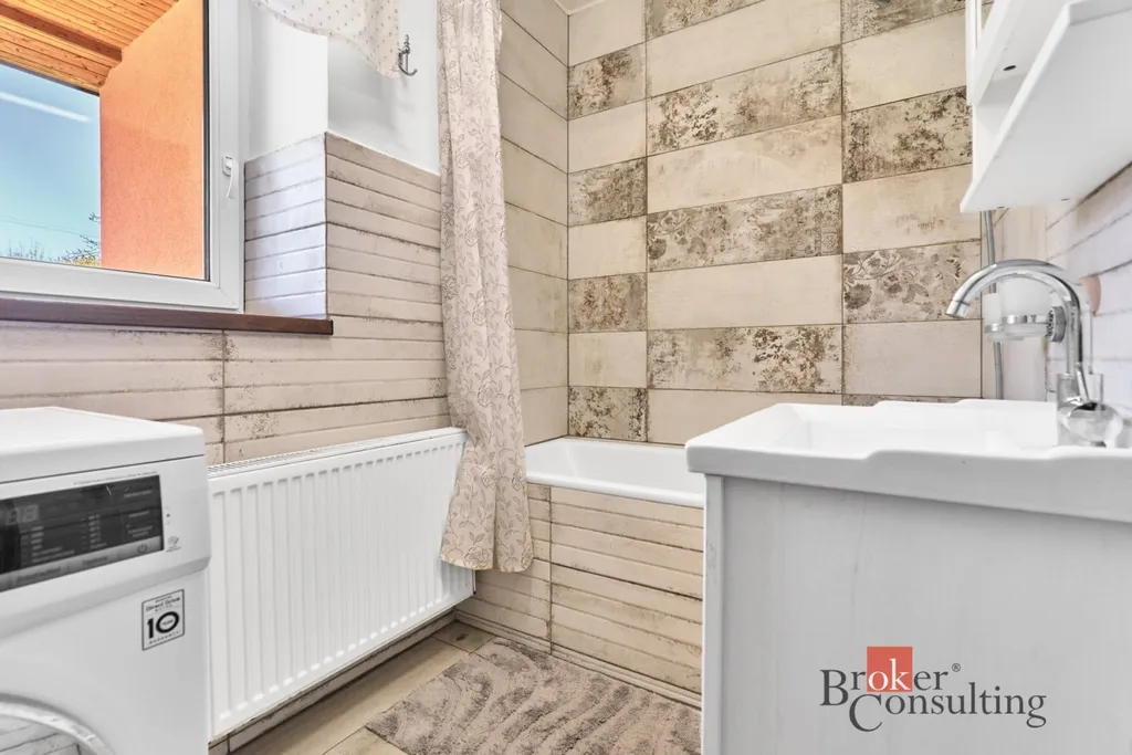 Vytápění je řešeno moderním tepelným čerpadlem vzduch–voda značky Toshiba, což výrazně snižuje provozní náklady domu. Velkým benefitem je kuchyňská linka na míru včetně spotřebičů, přičemž dům může zůstat kompletně vybavený dle dohody.